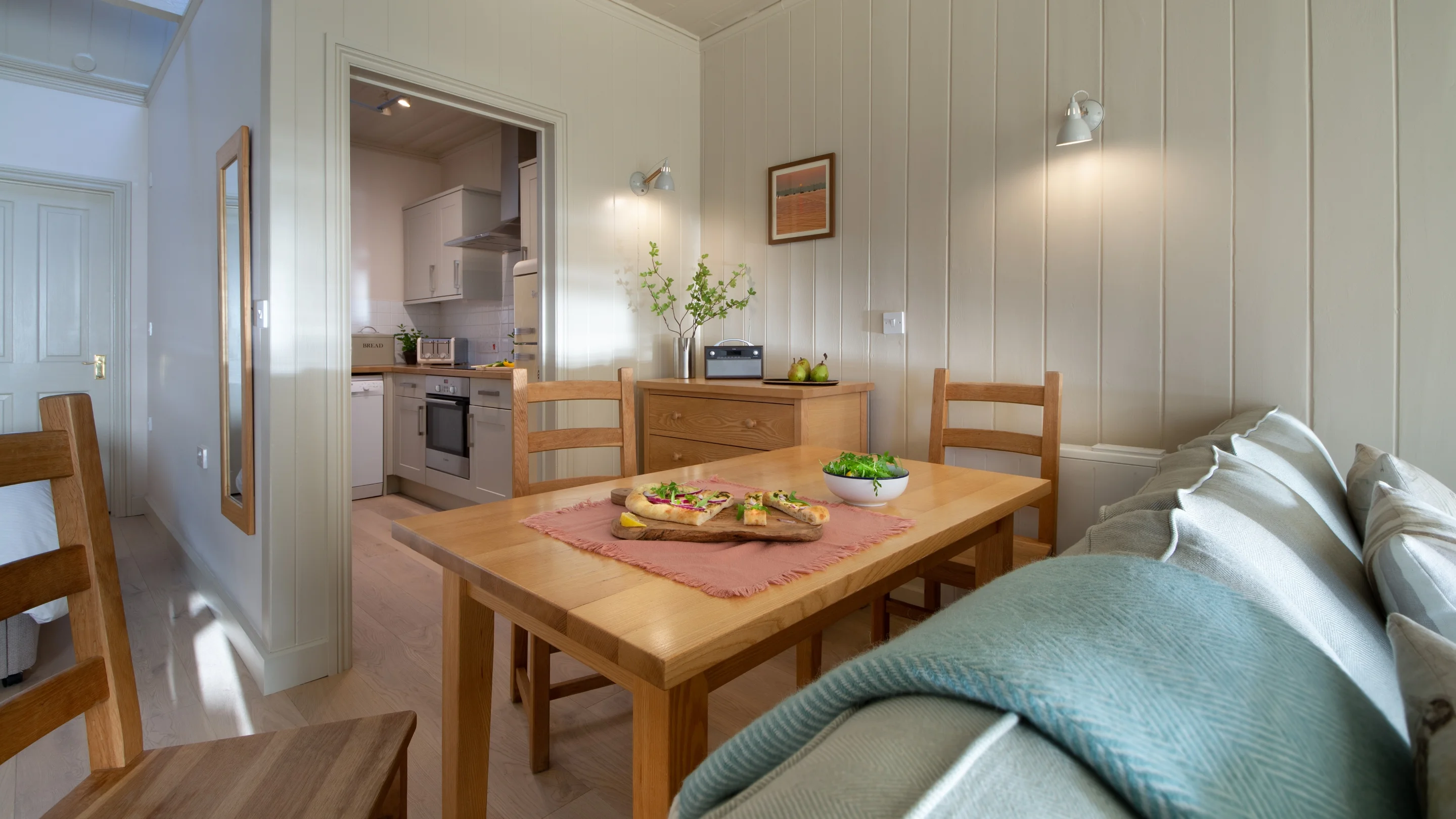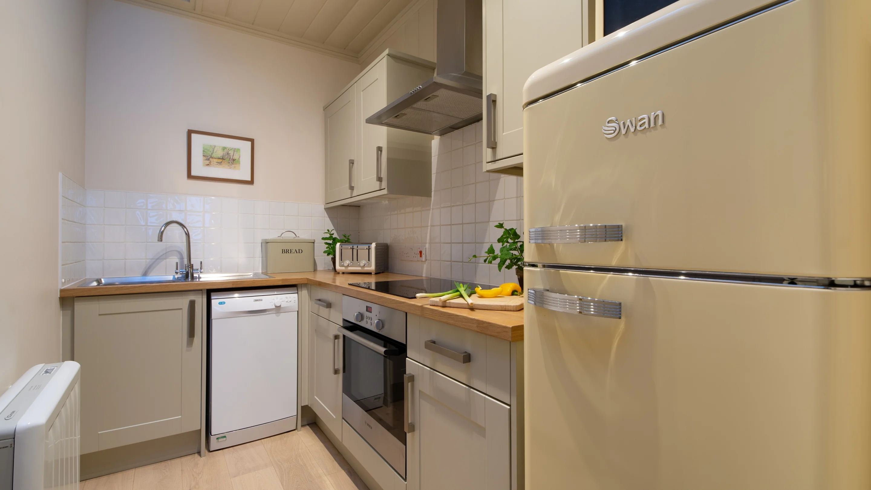 The old WC and shower room were stripped out and replaced with a more spacious, traditionally styled bathroom, finished with new tiling and sanitaryware. A compact, efficient kitchen was installed to better utilise the limited space, offering all the modern facilities expected by guests while retaining the building’s timeless charm. As with Agents House, all panelling and joinery were finished with National Trust-approved paints.